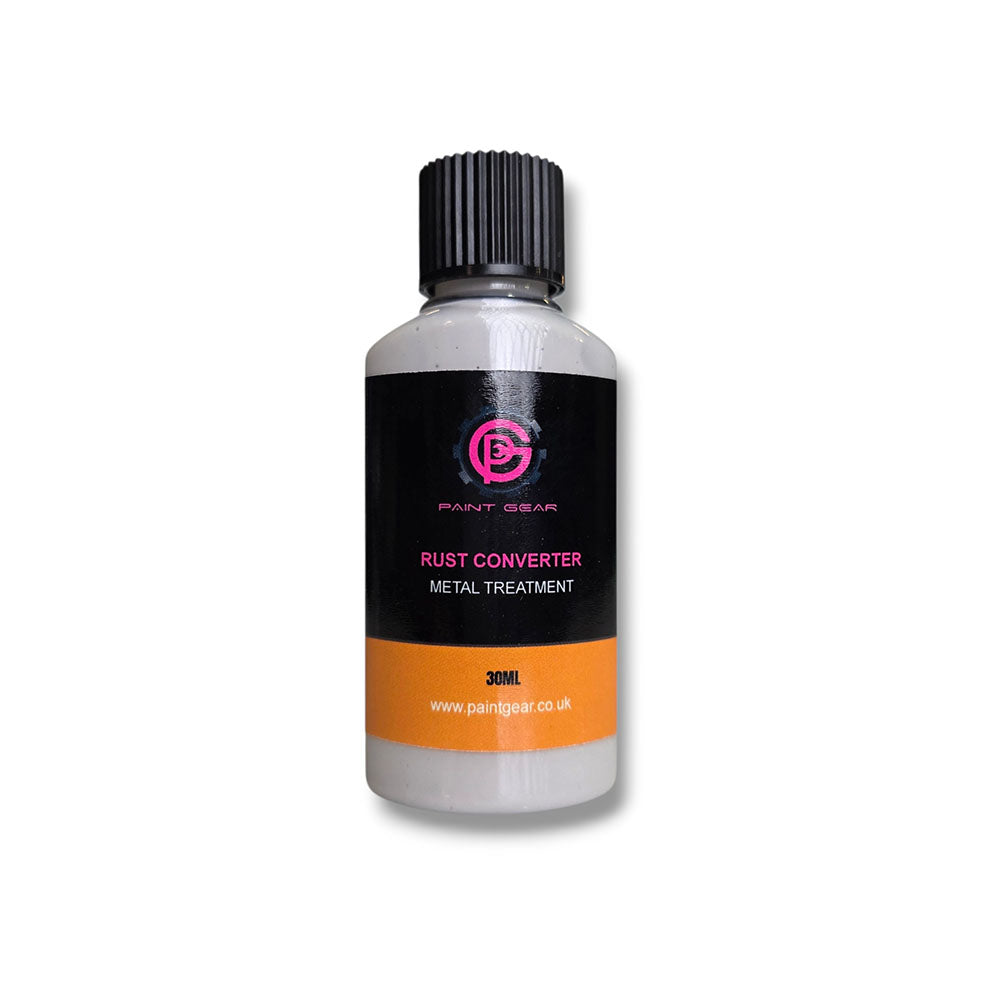 Paint Gear Rust Converter is the fast and effective way to treat rust. The fast acting, water based formulation chemically converts rust in to a stable surface that prevents further rusting by creating a barrier to water vapour, oxygen and carbon dioxide.  It also provides superior resistance to bacterial growth.  Once treated, the surface can be painted directly over using most modern paints, without the need for a primer. Easy to use, simply spray directly onto rust and watch as it gets to work, transforming rust into a ready to paint black / purple surface.